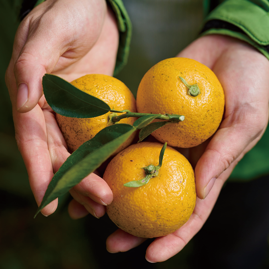 柚子とだいだいの自然交配で生まれた香酸柑橘のひとつ。柚香とも表記される。香りユズ、酸味スダチ、味ユコウと呼ばれるほど、香酸柑橘類では旨味成分が高く、まろやかな味わいが特徴。 -